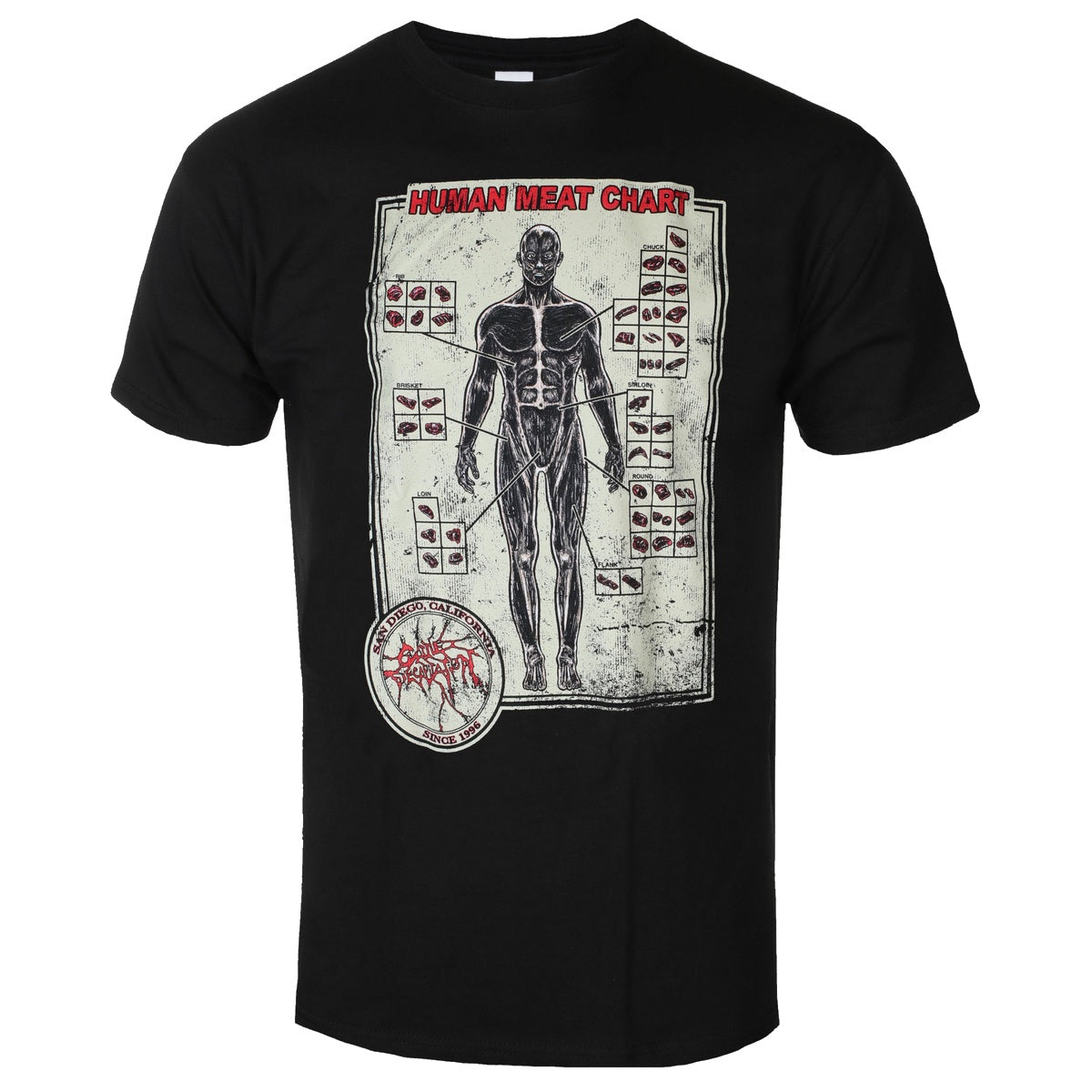 CATTLE DECAPITATION HUMAN MEAT CHART T-SHIRT BLACK