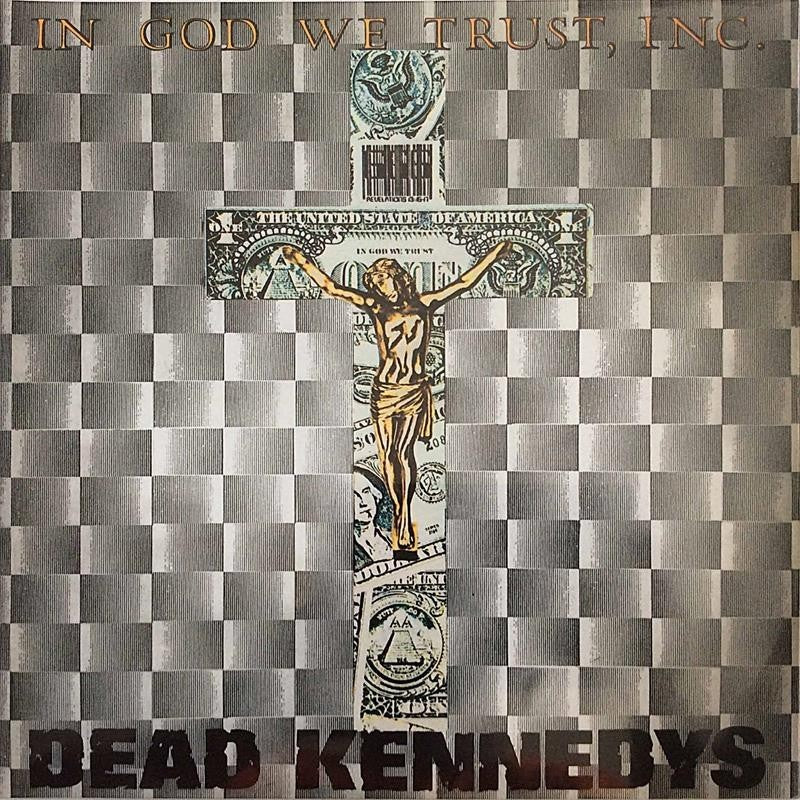 In God We Trust, Inc. is a hardcore punk EP by the Dead Kennedys. The thrashing, lightning-fast beats and shouted (often jumbled) vocals, on the first six tracks, resembles Washington, D.C.'s punk bands of the time; more than on any other Dead Kennedys release, the music here is conventionally "hardcore." The album spends the first two tracks attacking organized religion before going on to attack such diverse topics as Neo Nazis, President Ronald Reagan, the pesticide Kepone, and the kind of governmental indifference that vastly worsened the effects of catastrophes like the Minamata disease. "We've Got a Bigger Problem Now" is a lounge jazz remake of "California Über Alles" from the previous album with Ronald Reagan instated in place of Jerry Brown. The EP also includes a cover of the theme song from the 1960s show, Rawhide. The album cover depicts a golden Jesus crucified on a cross of dollar bills, with a background of a shiny metal material.