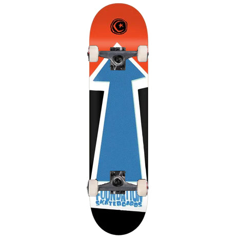 Foundation Arrow Red 8.25 In House Built Complete, complemented with Theeve Trucks, Mini Logo Bearings, Mini Logo Wheels and PushCa griptape